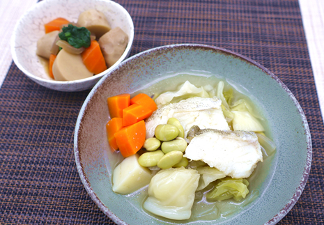 野菜の皮を剥くことからはじめ、天然の出汁を用いてやさしい味と栄養価を守る調理をしています。