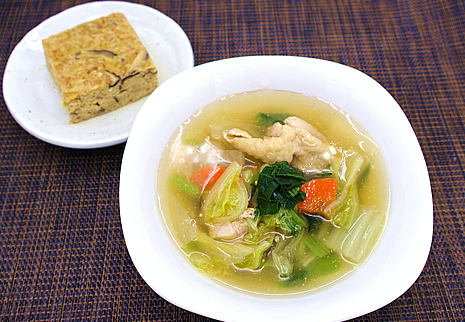 ●原材料(主菜):(すべて国産)鶏肉、白菜、大根、 玉ねぎ、人参、小松菜、寒こうじ、醤油、 食塩(一部に鶏肉、大豆、小麦含む)