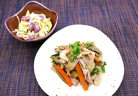 豚肉は、熟成させてしっとりとした食感になるよう工夫しました。食べ応えを出すために太めに切った根菜と一緒に炒め、ごま醤油で味を整えています。たんぱく質と野菜を一度に摂れる、嬉しいお惣菜です。