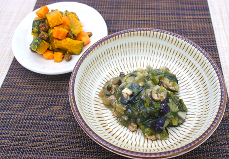 ●原材料(副菜):かぼちゃ(国産)、人参(国産)、 有機レーズン(アメリカ)、マヨネーズ、 食塩(一部に卵を含む)