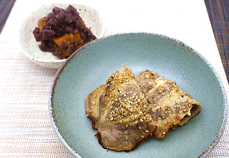 生姜風味をきかせた豚肩ロース肉を玉子で包み、たっぷりの胡麻をふって香ばしく焼き上げました。ビタミンBが豊富なお惣菜で、疲労回復やストレス解消にもおすすめです。胡麻の香ばしさが食欲をそそり、見た目にも楽しくクセになる美味しさです。